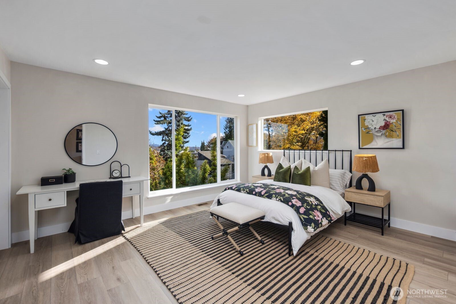 Take advantage of a limited-time 2/1 RATE BUY-DOWN* offer with this rarest of finds--a true hidden gem above Alki unlike anything Seattle has seen. This bespoke North Admiral showpiece captures the essence of modern artistry & precision craftsmanship, framing panoramic skyline & Bay vistas through sweeping walls of glass. Every room delivers front-row seat to the city's dynamic horizon. The open-concept great room blurs the line between grand entertaining & tranquil retreat, while a private MIL suite offers unmatched versatility/income potential, and unlock future value w/ DADU built on a generous lot. Solar panels, Tesla inverter, premium finishes & high-efficiency home systems showcase innovation at its finest. Just minutes to water taxi, cafes, beaches & West Seattle Bridge--this is luxury, redefined. *Restrictions apply, offer limited to preferred lender.
