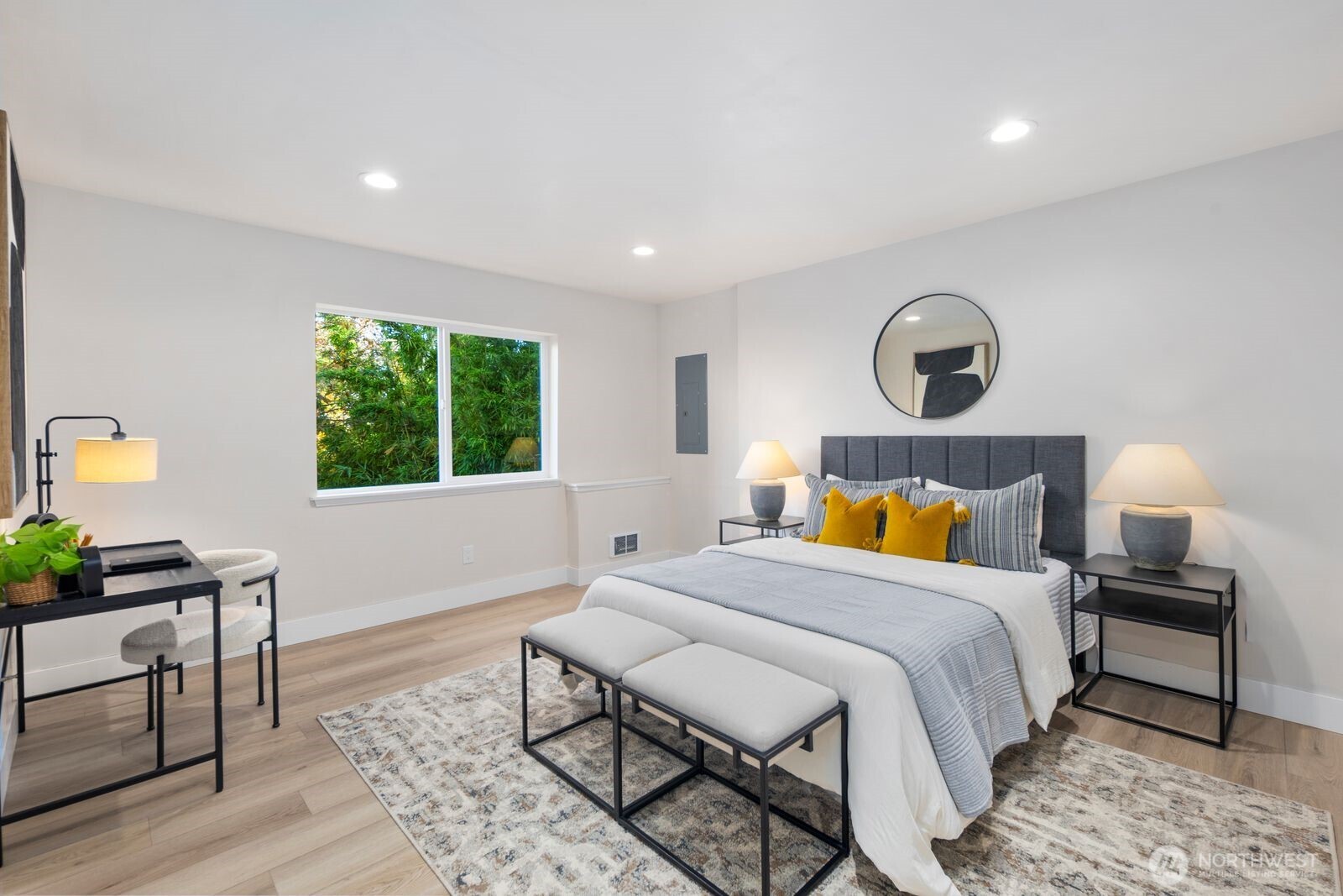 Indulge yourself with this rarest of finds--a true hidden gem above Alki unlike anything Seattle has seen. This bespoke North Admiral new construction showpiece captures the essence of modern artistry & precision craftsmanship, framing panoramic skyline & Bay vistas through sweeping walls of glass. Every room delivers front-row seat to the city's dynamic horizon. The 4bed 3.5bath main home features an open-concept great room that blurs the line between grand entertaining & tranquil retreat, while a permitted 1bed 1bath ADU with separate entrance offers unmatched versatility or income potential whether renting it out long- or short-term i.e. Airbnb. Further unlock future value w/ DADU built on a generous lot. Best price/sqft value for a brand new view home boosting over 3,600sqft of wow factor! Solar panels, Tesla inverter, premium finishes & high-efficiency home systems showcase innovation at its finest. Just minutes to water taxi, cafes, beaches & West Seattle Bridge--this is luxury, redefined.